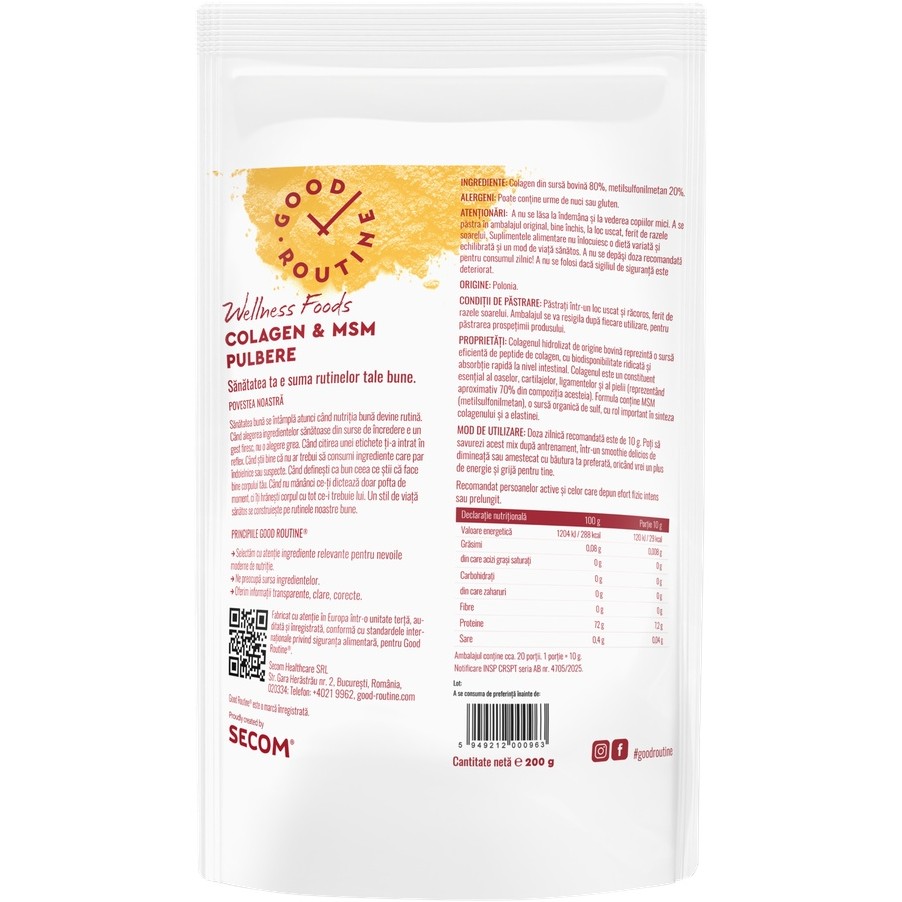 - formula contine MSM (metilsulfonilmetan), o sursa organica de sulf, cu rol important in sinteza colagenului si a elastinei;