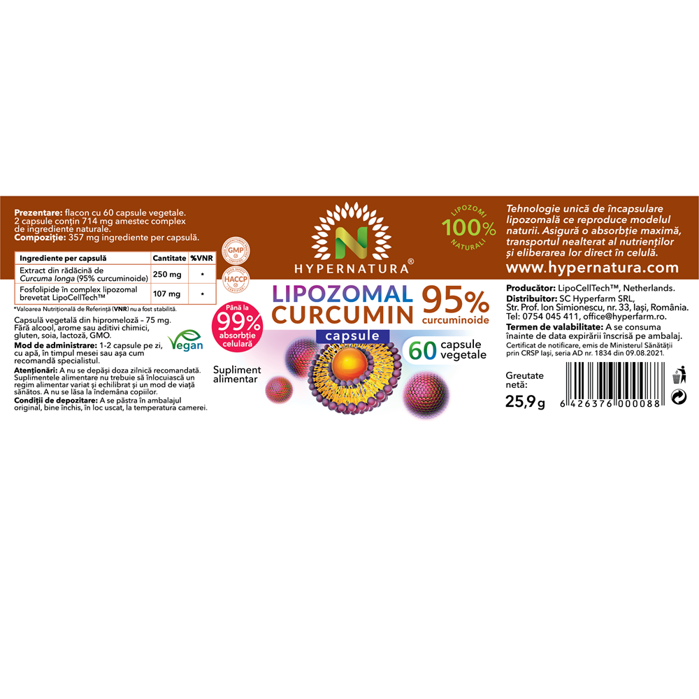 Lipozomal Curcumin, 60 capsule vegetale, Hypernatura [6426376000088]