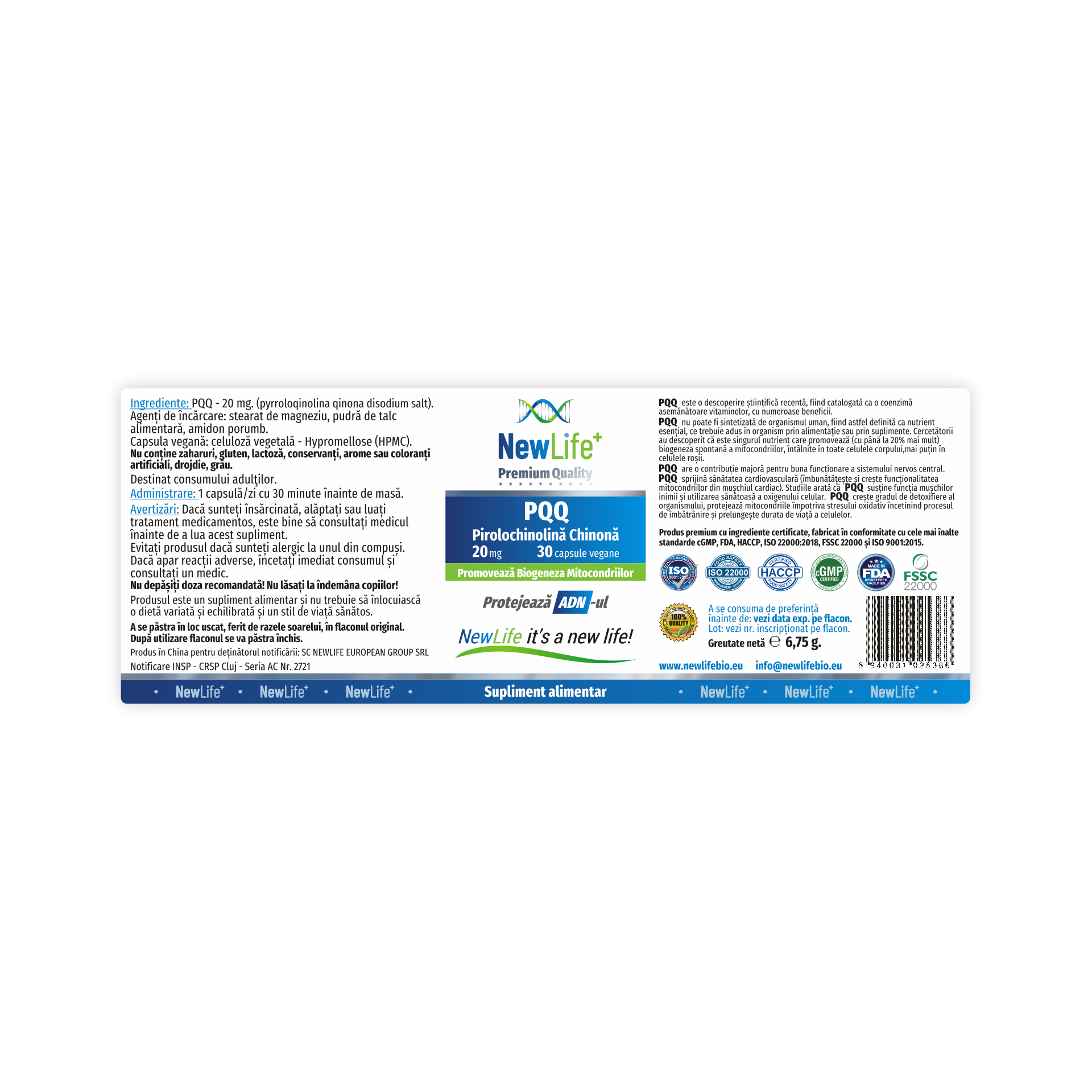 Produs premium cu ingrediente din surse certificate, fabricat în conformitate cu cele mai înalte standarde din industria farmaceutică și pentru siguranță alimentară: cGMP, US-FDA, HACCP, ISO 22000:2018, FSSC 22000 și ISO 9001:2015.