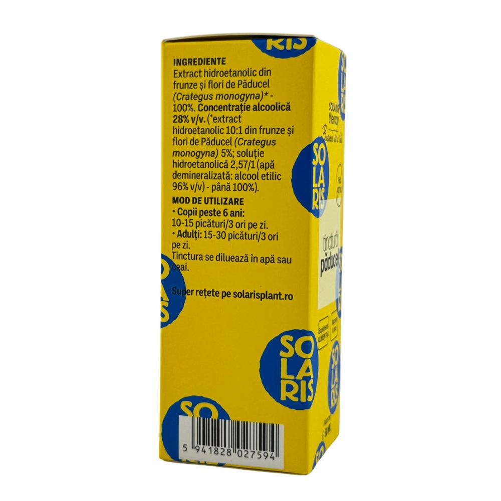 Extract hidroetanolic din frunze si flori de Paducel (Crategus monogyna)* - 100%. Concentratie alcoolica 28% v/v. ( * extract hidroetanolic 10:1 din frunze si flori de Paducel (Crategus monogyna) 5%; solutie hidroetanolica 2,57/1 (apa demineralizata:alcool etilic 96% v/v) – pana 100%).