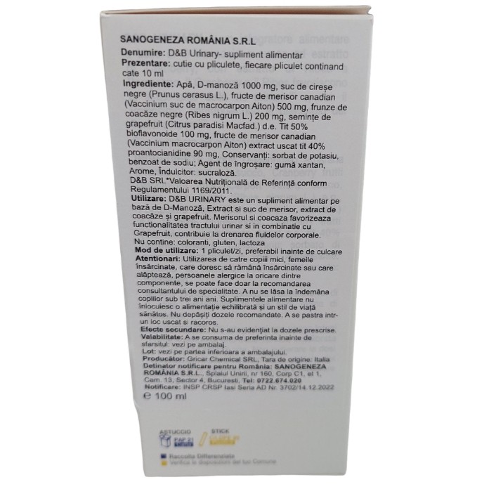 D&B Urinary 10 plicuri x 10 ml Sanogeneza face parte din categoria supliment alimentar investigatii si analize de laboratorsumarul de urina: biochimie si sediment urinar, urocultura.