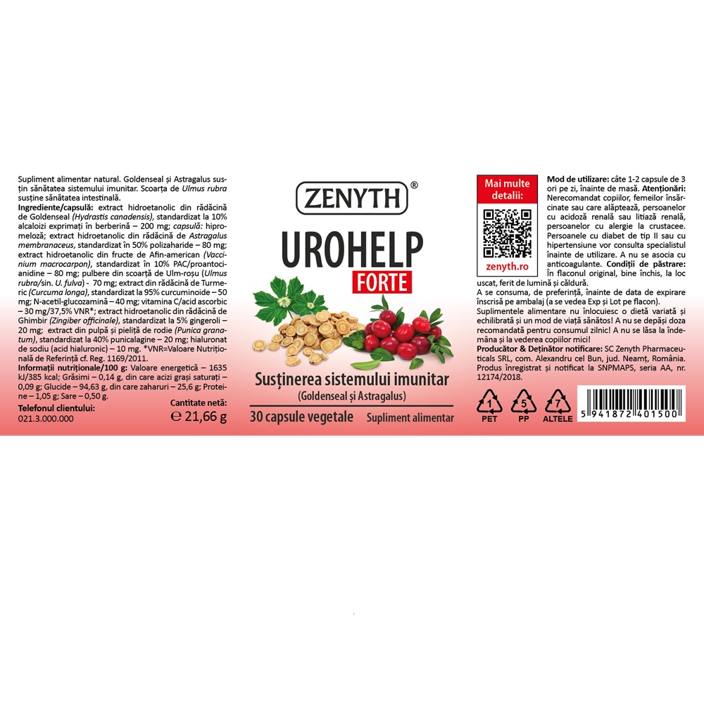 UroHelp Forte 30 capsule vegetale Zenyth(Goldenseal si Astragalus pot contribui la sustinerea sistemului imunitar) face parte din categoria supliment alimentar investigatii si analize de laboratorsumarul de urina: biochimie si sediment urinar, urocultura.
