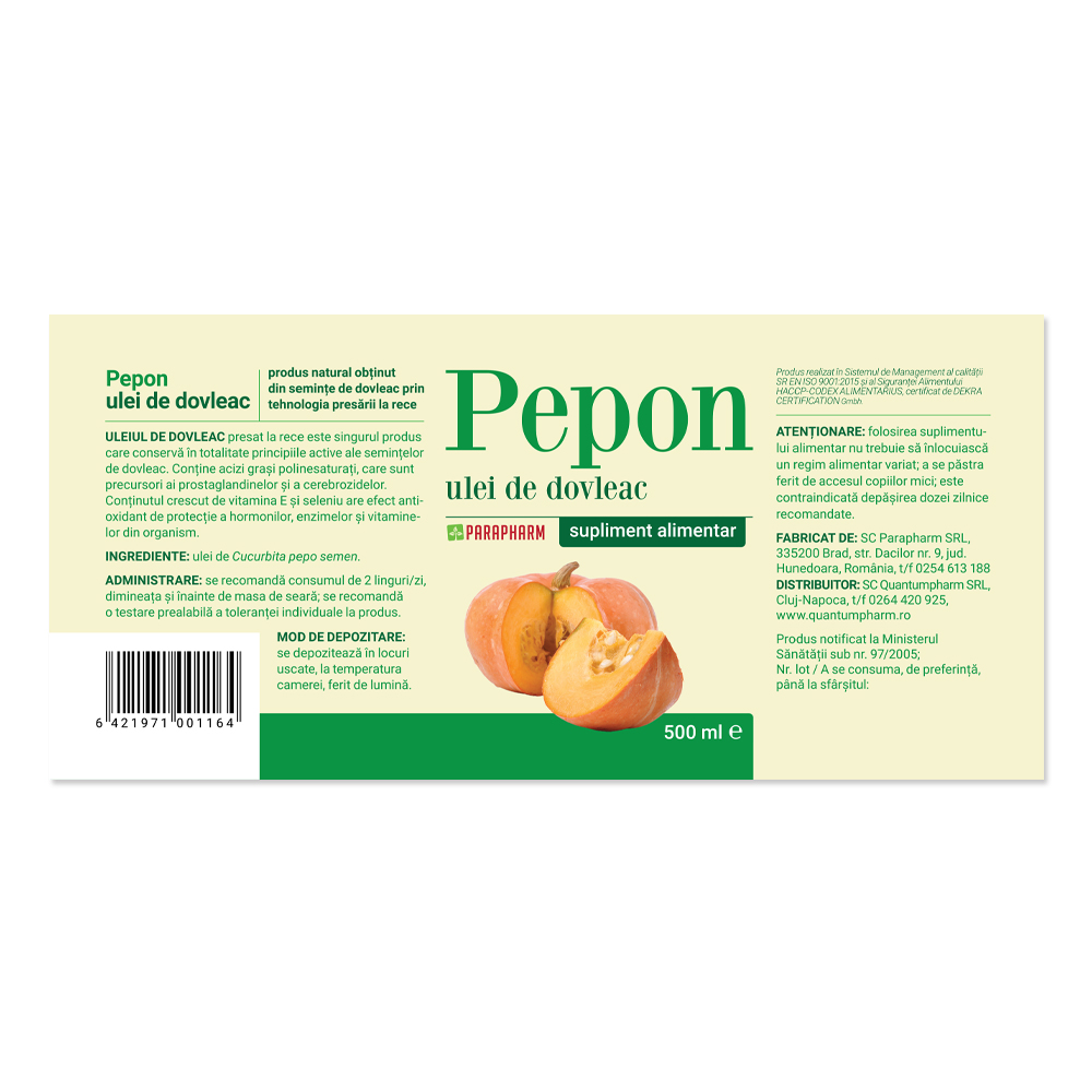 - produs natural obținut din semințe de dovleac prin tehnologia presării la rece;